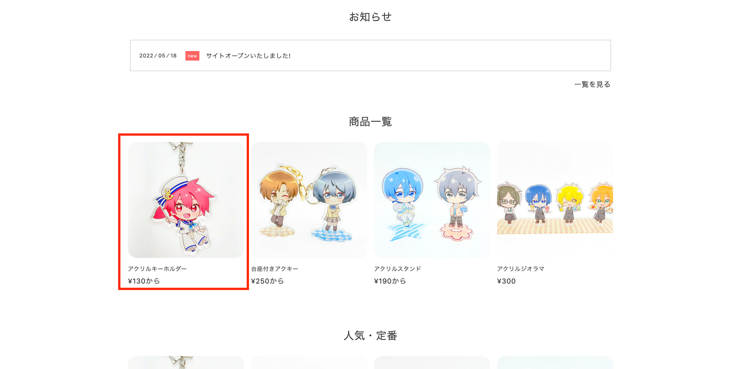 ・トップページ、または「商品一覧ページ」からご注文いただく商品をお選びください。